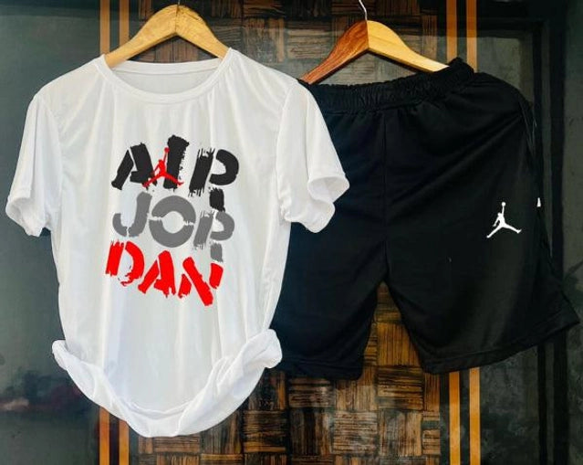 Lycra Printed Tracksuit for Men (White & Black, M)