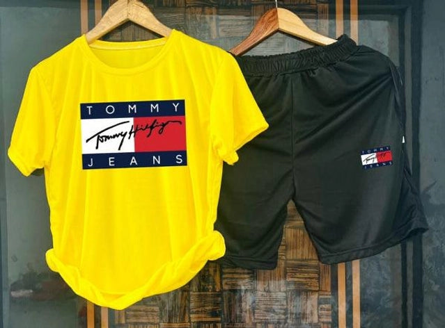 Lycra Printed Tracksuit for Men (Yellow & Black, M)