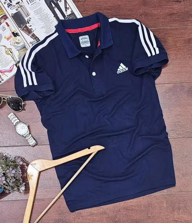 Polo Neck T-Shirt for Men (Navy Blue, M)